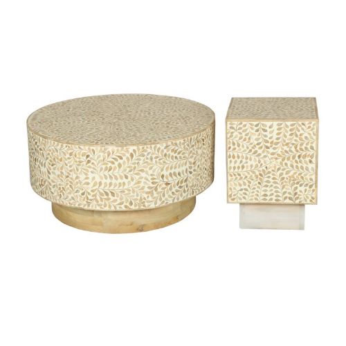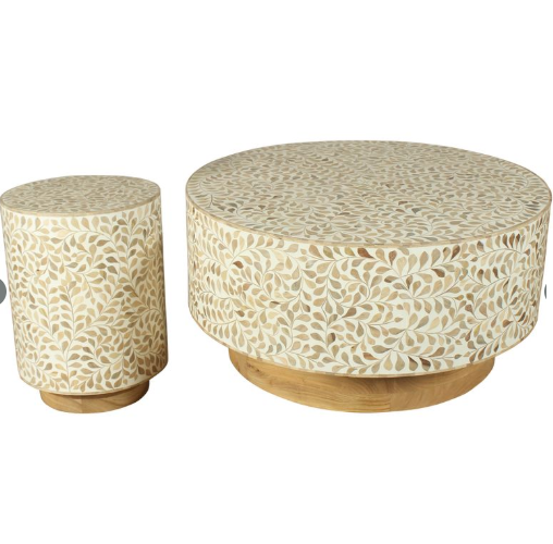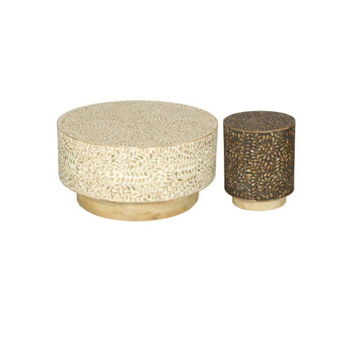 โต๊ะกาแฟทำจากไม้ทรงกลมที่มีความโดดเด่นของช่างฝีมือดีไซน์งานฝีมือพร้อมรายละเอียดที่ซับซ้อนเหมาะสำหรับห้องนั่งเล่น