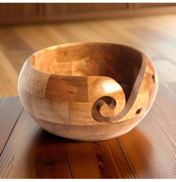 ชามไหมพรมสำหรับช่างฝีมือโลกทำจากไม้ขนาดใหญ่โฮลซ์การ์นชูสเซลเชือกถักไหมพรมพร้อมลูกบอลฟรี