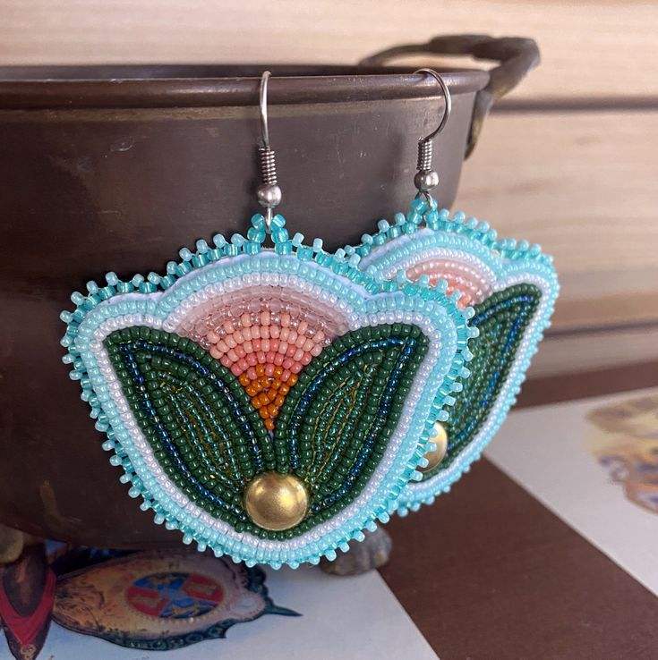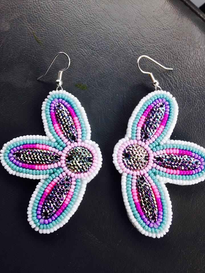 ต่างหูลูกปัดศิลปะปักด้วยด้าย