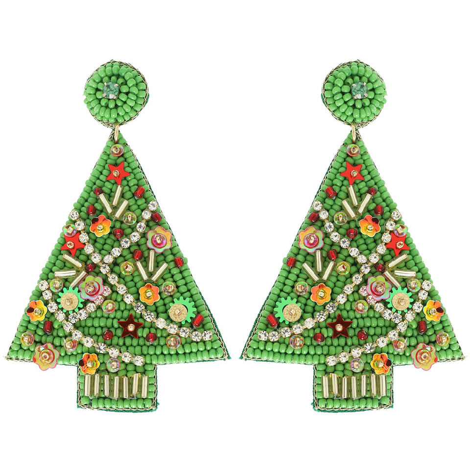 ต่างหูปักด้วยลูกปัดแนวเทศกาลและลูกปัดหลากสีทำด้วยมือจากลูกปัดแก้ว100เปอร์เซ็นต์