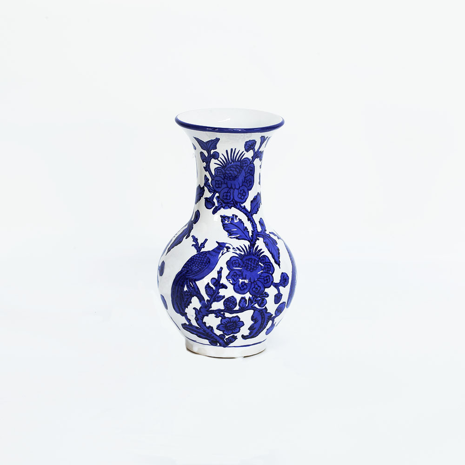 โถเซรามิกแนวศิลป์ที่มีดอกไม้สีน้ำเงินวาดด้วยมือและผิวเคลือบเงาสำหรับการตกแต่งที่ซับซ้อน
