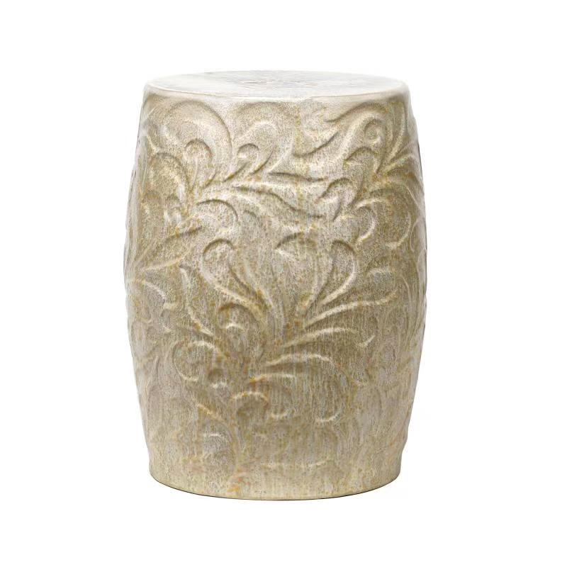 Artistic Engraved Foliage Ceramic Stool with Vibrant Glaze for Versatile Indoor-Outdoor Serving as Accent Table