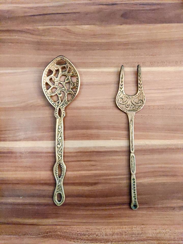 ชุดอุปกรณ์เสิร์ฟสลัดเคลือบทองแบบศิลปะ เหมาะสำหรับการรับรองแขกและงานเฉลิมฉลอง ผลิตด้วยมือจากอินเดีย