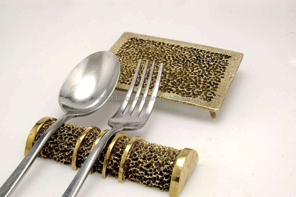 Artistic Golden Brass Cutlery Rest Designed For Luxury Home Dining Room Kitchen Table Tableware