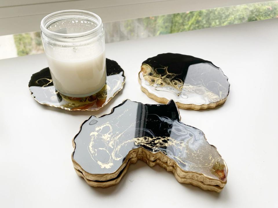 ถาดเรซิ่นรูปหัวใจสีดำพร้อมดีไซน์สีทองและทองแดงถาดทำด้วยมืออันหรูหราสำหรับตกแต่งและจัดเก็บจากอินเดีย
