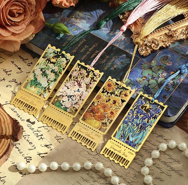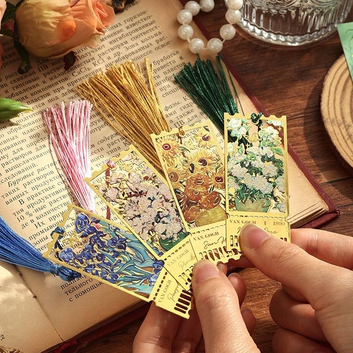 ที่คั่นหนังสือโลหะลายดอกไม้ฉลุลายหลากสีพร้อมพู่ห้อย คลาสสิก ใช้ซ้ำได้ พิมพ์ลาย UV เหมาะสำหรับเป็นของขวัญองค์กรสุดสร้างสรรค์