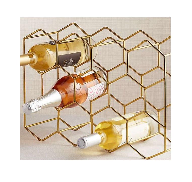 ชั้นวางขวดไวน์เหล็กดีไซน์ศิลปะพร้อมโครงสร้างที่มั่นคงเพื่อการจัดแสดงบนโต๊ะอย่างปลอดภัย