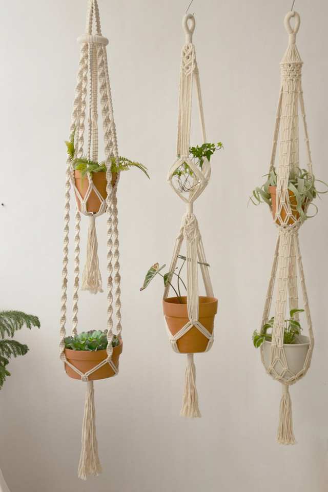 กระถางต้นไม้เชือกมาคราเม่แบบศิลปะสำหรับแขวนตกแต่งบ้าน เพิ่มเสน่ห์งานฝีมือให้กับการตกแต่งภายในบ้าน