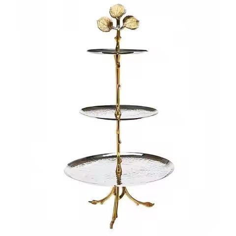 ชั้นวางขนมโลหะดีไซน์สวยงามหลายชั้น สำหรับงานเลี้ยงโอกาสพิเศษและงานจัดเลี้ยงสุดหรู