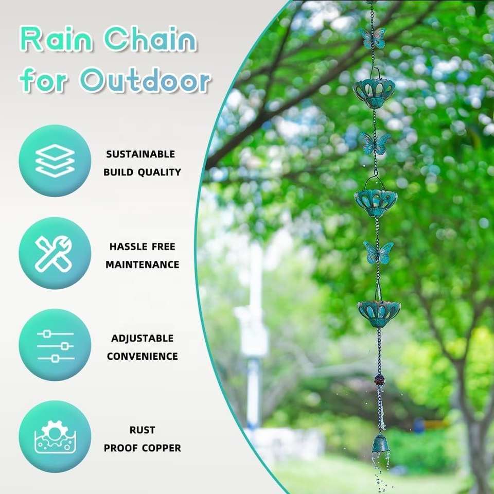 โซ่ระบายน้ำฝนตกแต่งภายนอกอาคารสำหรับรางน้ำฝนบนหลังคา สวน ทำจากโลหะ