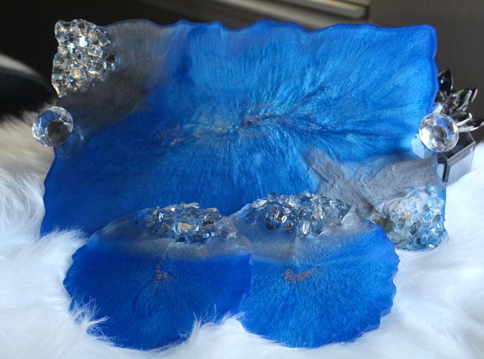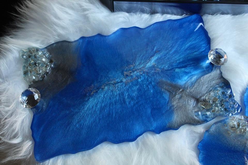 ถาดเรซิ่นแนวศิลปะถาดใส่ของแฮนด์เมดราคาไม่แพงสำหรับใส่แปรงแต่งหน้าและเครื่องประดับถาดเรซินแบบทันสมัย