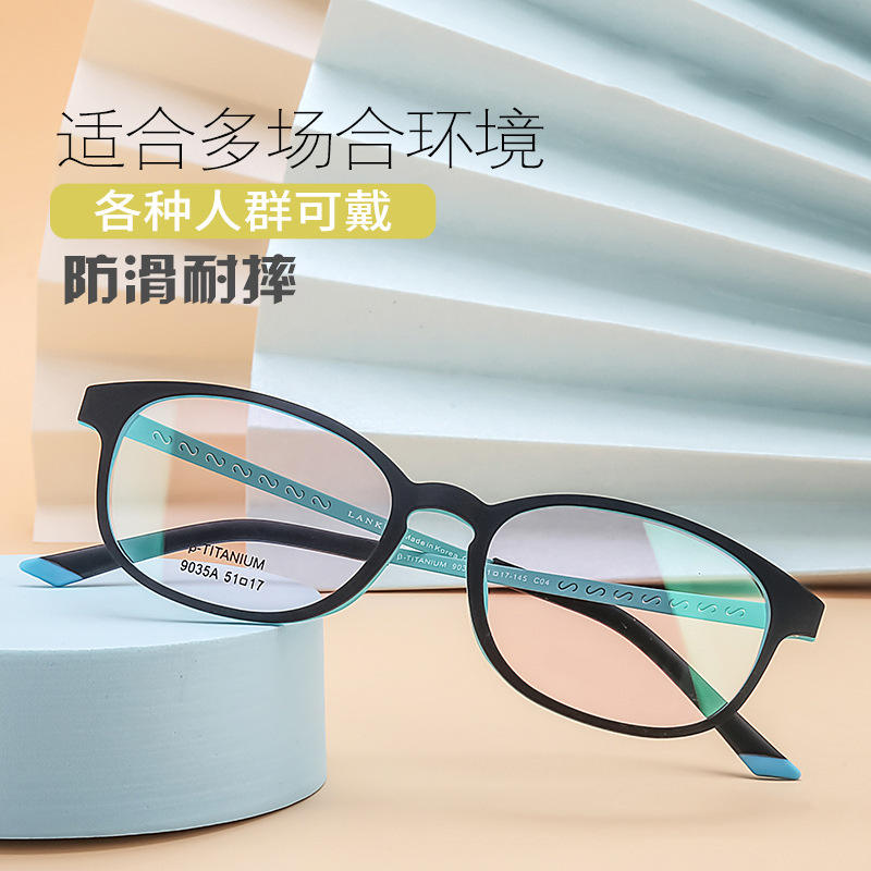 กรอบแว่นตาทรงรีสไตล์เรโทร ดีไซน์ศิลปะ เลนส์อะคริลิคเต็มกรอบ กันลื่น สำหรับทุกเพศ ผลิตที่ตานหยาง รุ่น 9035