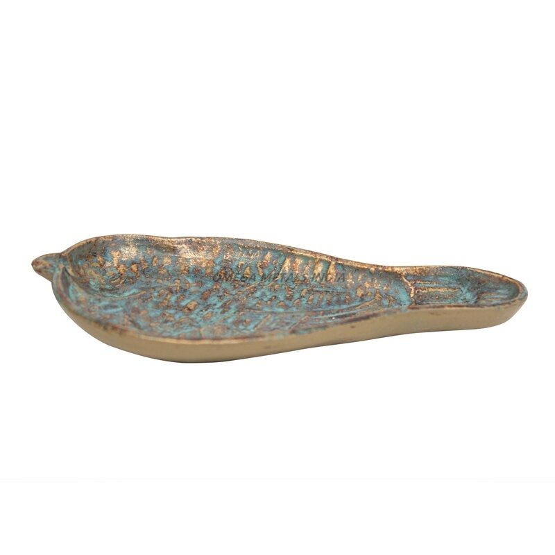ถาดเสิร์ฟรูปปลาสีเทอร์ควอยซ์ที่มีพื้นผิวที่เป็นเอกลักษณ์และการออกแบบที่หรูหราเหมาะสำหรับการจัดแสดงของตกแต่งและของว่าง