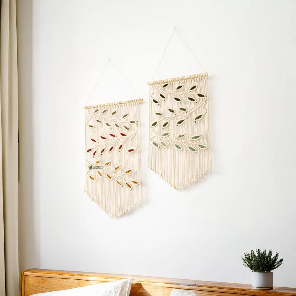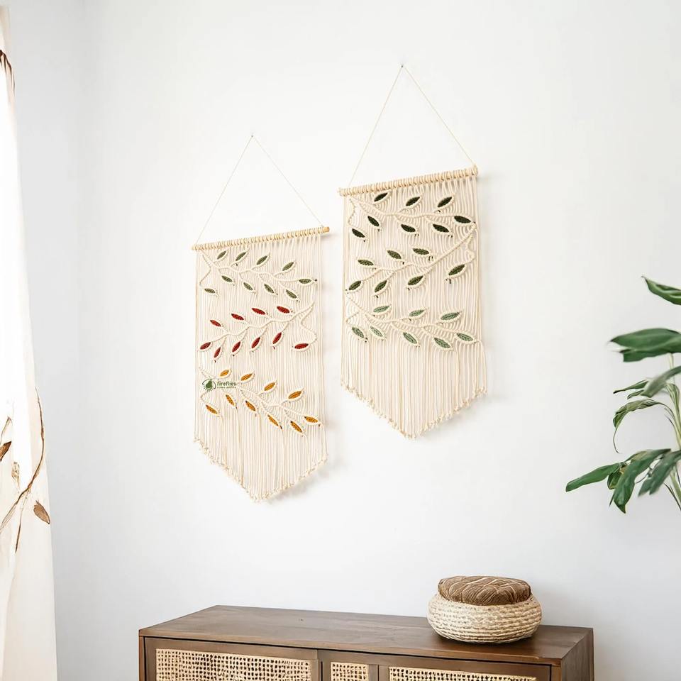 ที่แขวนผนัง macrame ศิลปะสีขาวพร้อมดีไซน์ใบไม้สำหรับการตกแต่งภายในบ้านที่ทันสมัยการจัดแสดงบนผนังอย่างมีสไตล์และเน้นการตกแต่ง