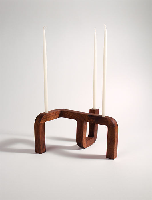เชิงเทียนไม้กระถินแกะสลักลายศิลปะด้วยมือ ดีไซน์ทันสมัยสำหรับเทียนทรงเรียว 3 แท่ง - ของตกแต่งบ้าน