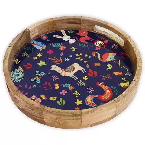 ถาดเสิร์ฟไม้ดีไซน์สวยงามสำหรับเสิร์ฟชา กาแฟ ขนม ของว่าง เหมาะสำหรับร้านกาแฟบูติก