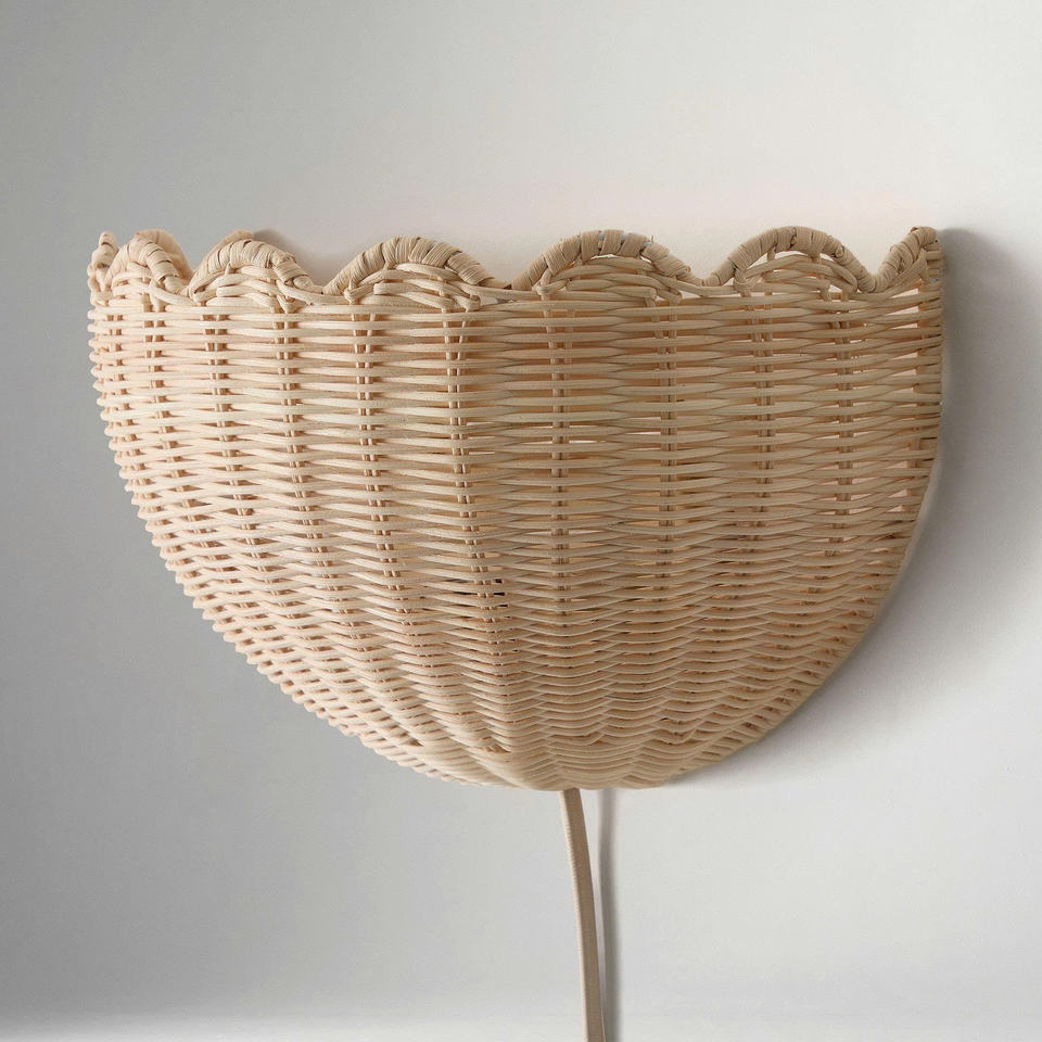 โคมไฟแขวนผนังหวายสานลายดอกไม้ ดีไซน์สวยงาม ตกแต่งห้องเด็กสไตล์โมเดิร์น ราคาขายส่ง