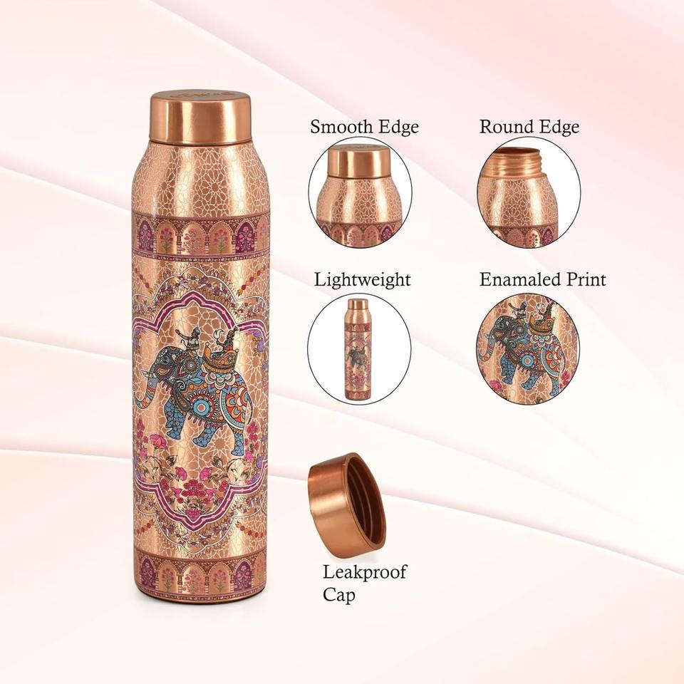 ขวดน้ำทำจากทองแดงแนวซิกแซกขวดน้ำที่ทันสมัยเหมาะสำหรับการเดินทางในน้ำการเล่นโยคะในยิมจากอินเดีย