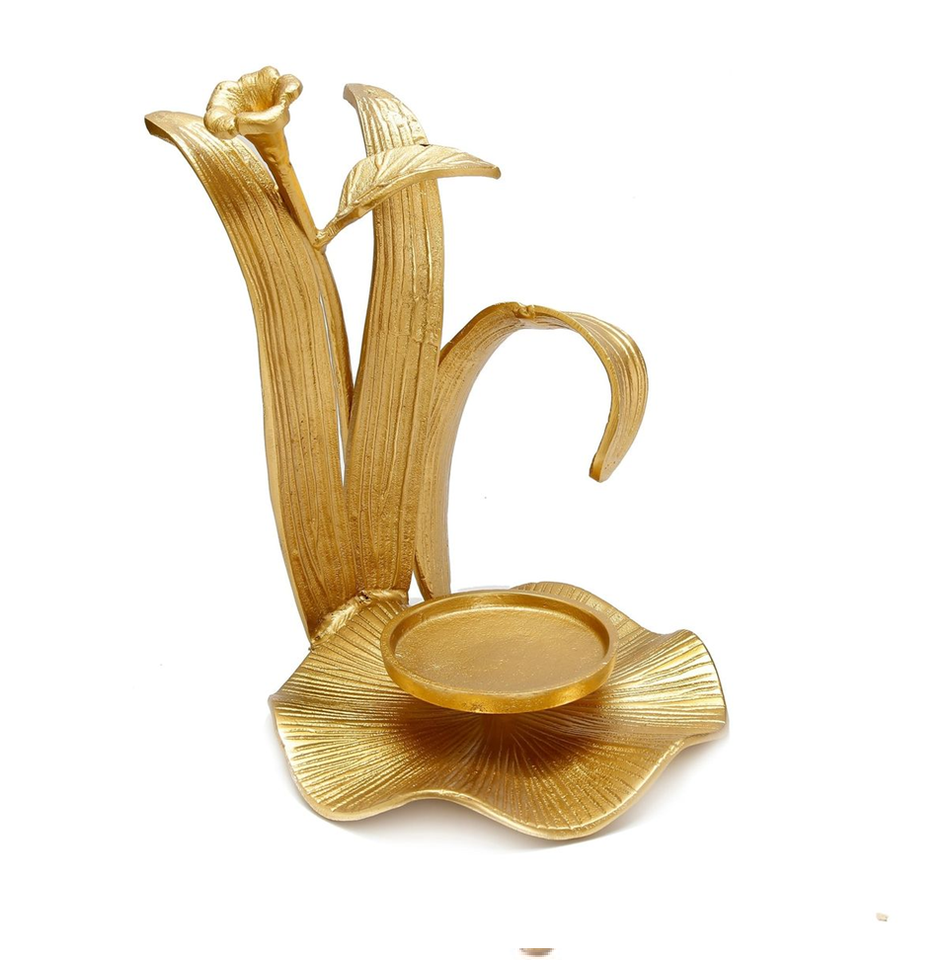 เชิงเทียนโลหะรูปดอกบัว 3 ดวง สไตล์โบราณ สีทอง งานศิลปะ ตกแต่งสวยงาม มีจำหน่ายในราคาขายส่ง