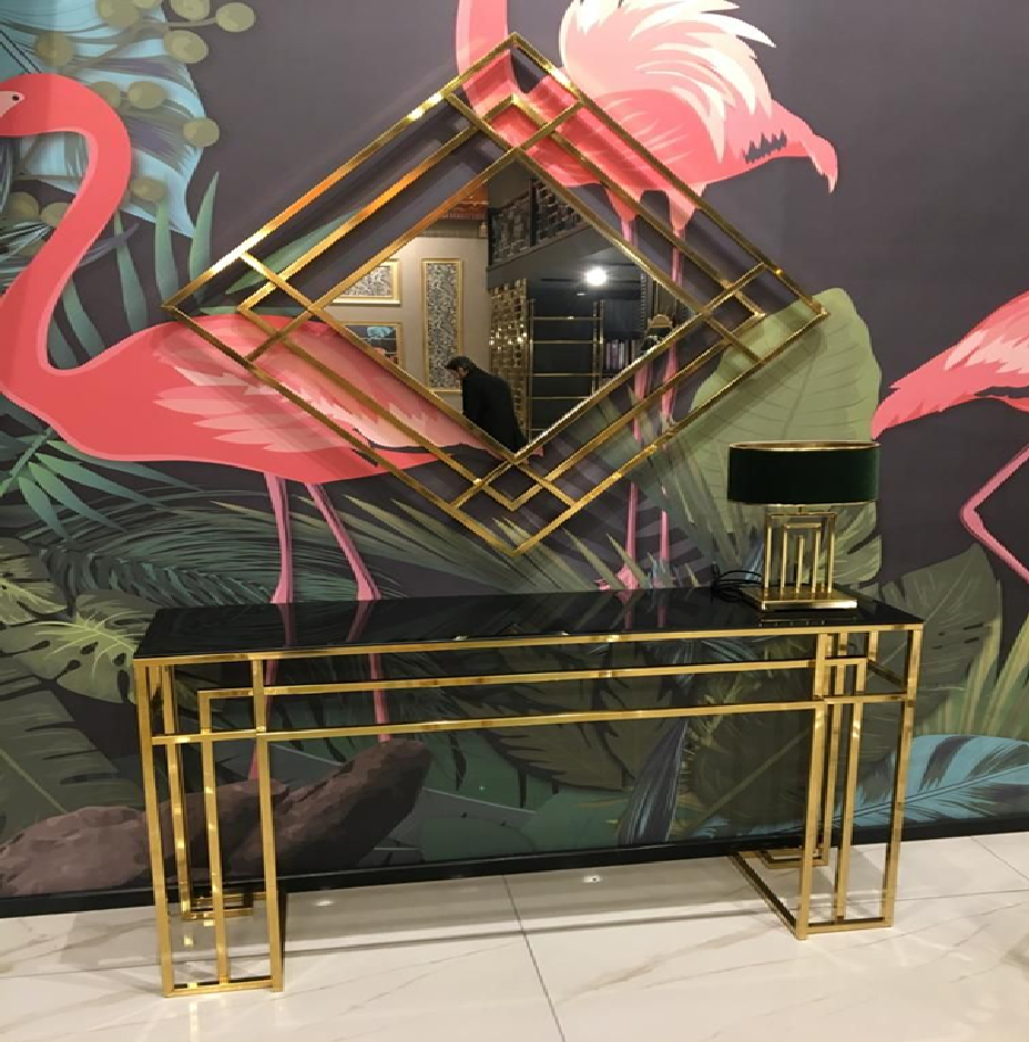 ชุดกระจกทรงวงแหวนสีทองลายศิลปะพร้อมฐานโค้ง; มีจำหน่ายในราคาขายส่ง