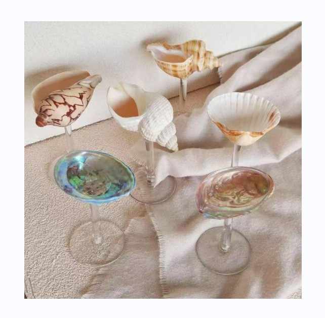 แก้วไวน์เปลือกหอยทำด้วยมือที่มีศิลปะเหมาะสำหรับบาร์ริมชายหาดและร้านขายของที่ระลึกพิเศษของรีสอร์ท
