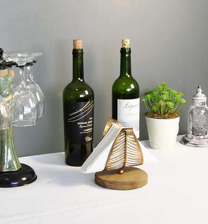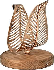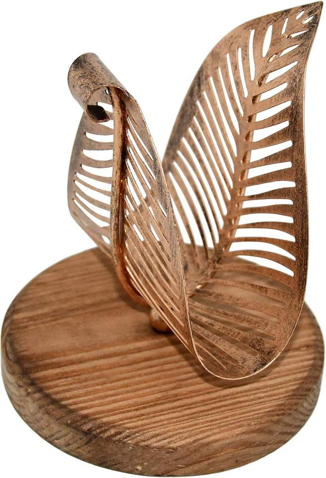 ที่ใส่กระดาษเช็ดปากรูปใบไม้โลหะทรงแนวตั้ง ความสูงปานกลาง ขนาด 6 นิ้ว ฐานไม้ทรงกลม
