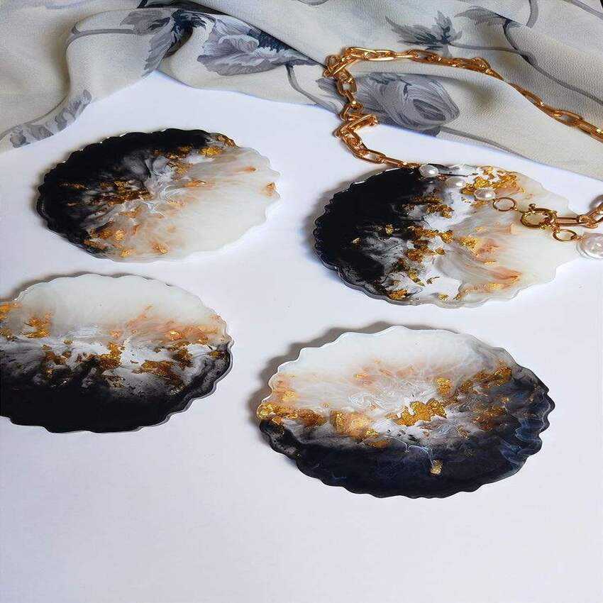 ชุดถาดรองแก้วเรซินทรงศิลปะทำด้วยมือสีทองเมทัลลิกที่เหมาะสำหรับห้องนั่งเล่นโต๊ะรับประทานอาหารและของขวัญ