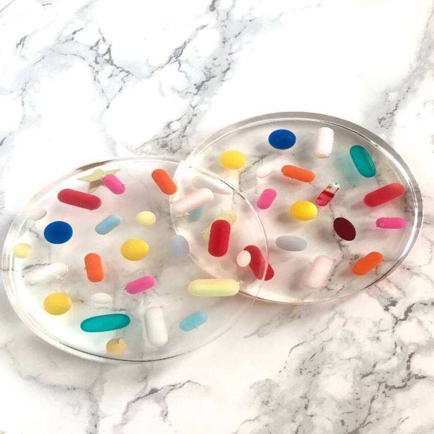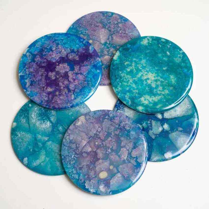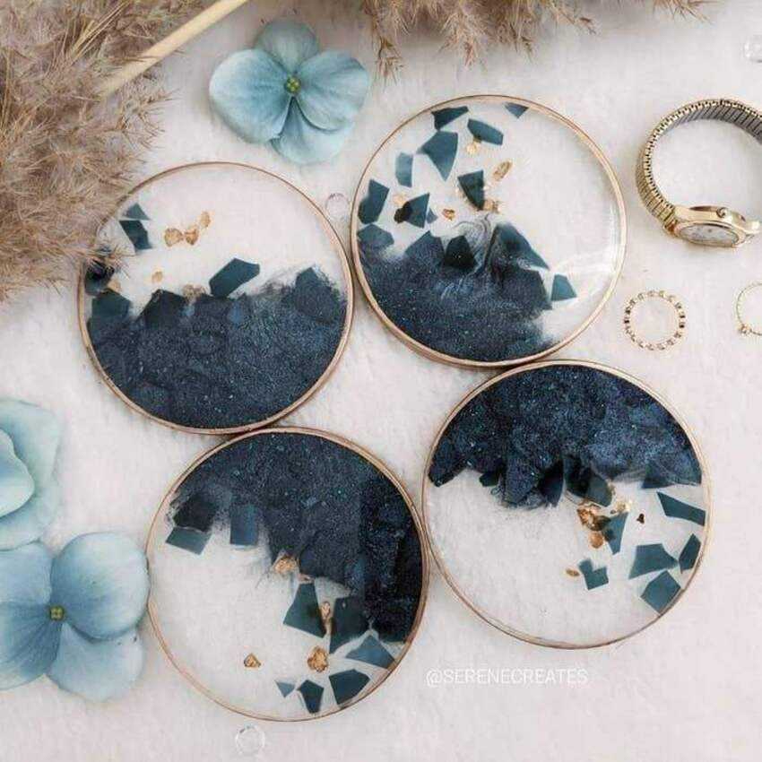 ชุดถาดรองแก้วทำจากเรซินสีทองเมทัลลิคทำด้วยมือเสื่ออีพ็อกซี่ระยิบระยับทำด้วยมือเหมาะสำหรับโต๊ะอาหารห้องนั่งเล่นและของตกแต่ง
