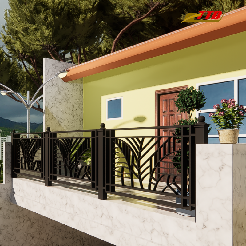 ราวระเบียงเหล็กดัดมีพื้นผิวเคลือบด้วยผงเหมาะสำหรับบ้านที่ทันสมัยตกแต่งกลางแจ้งและปลอดภัย