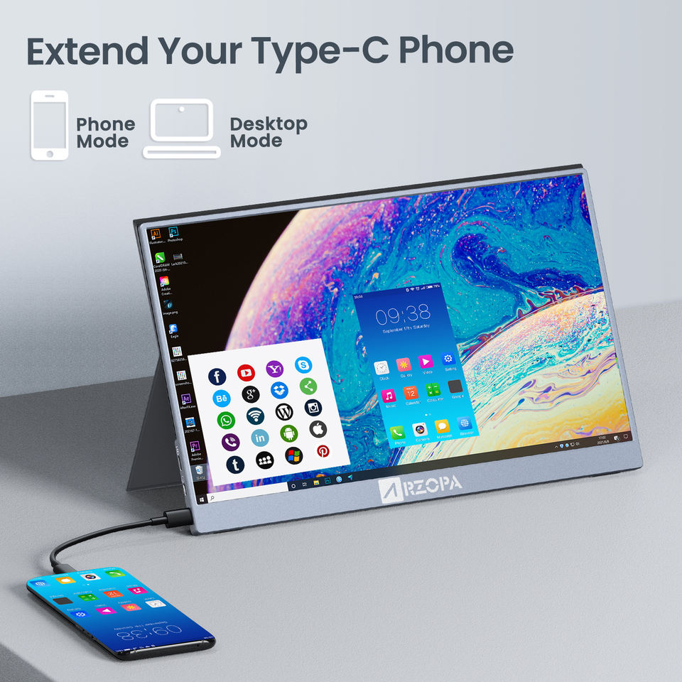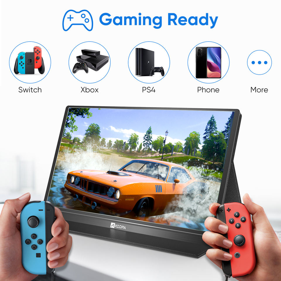 Arzopa จอ LCD ขนาด15.6นิ้วแบบพกพา,จอ LCD แบบขยายได้สำหรับแล็ปท็อปหน้าจอแสดงผลสำหรับเล่นเกม4K จอมอนิเตอร์คู่แบบพกพาสามจอ