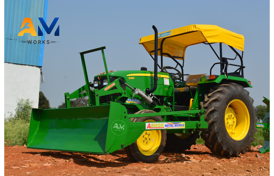 อุปกรณ์ต่อพ่วงรถดันดินขนาด 7 ฟุต 9 นิ้ว ยี่ห้อ Ashok Metal Works พร้อมใบมีดสูง 29 นิ้ว และความสูงยกได้ 30 นิ้ว สำหรับรถแทรกเตอร์ 2 ล้อขับเคลื่อน น้ำหนัก 600 กิโลกรัม
