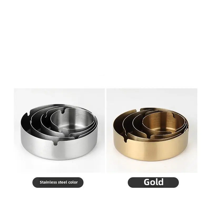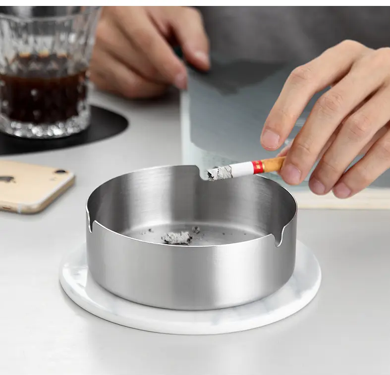 ชุดที่เขี่ยบุหรี่สแตนเลสทรงกลมแบบเรียบชุดที่เขี่ยบุหรี่สำหรับกลางแจ้งและที่บ้าน