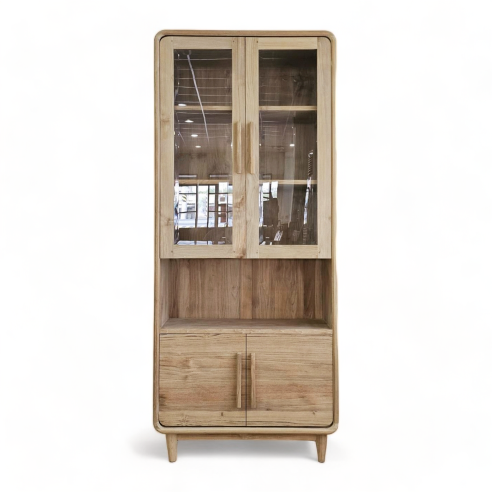 Product name:Asian Solid Wood Kitchen Cabinets with Glass Doors