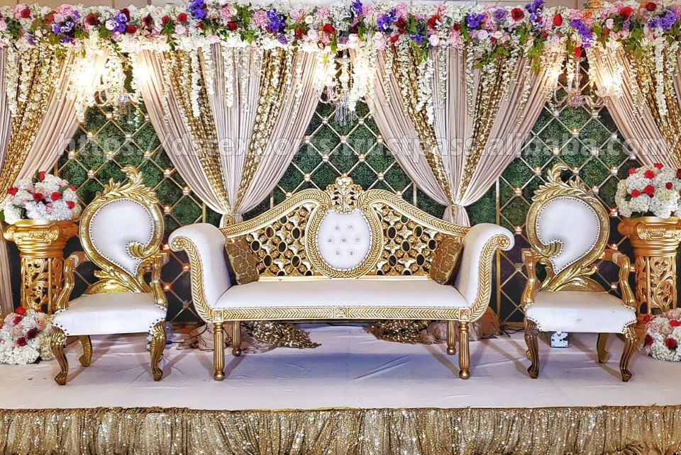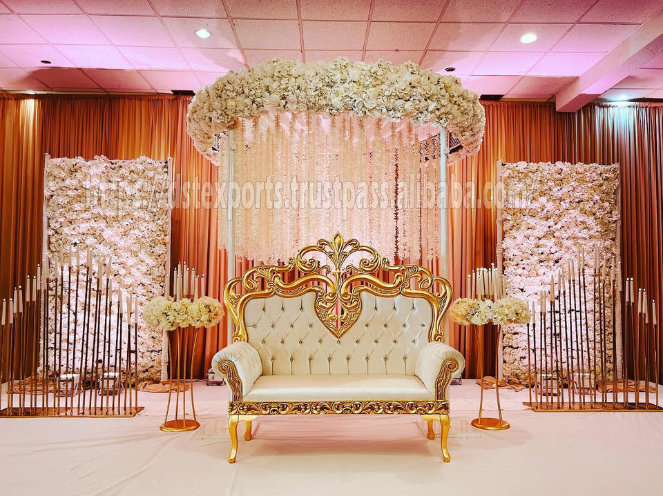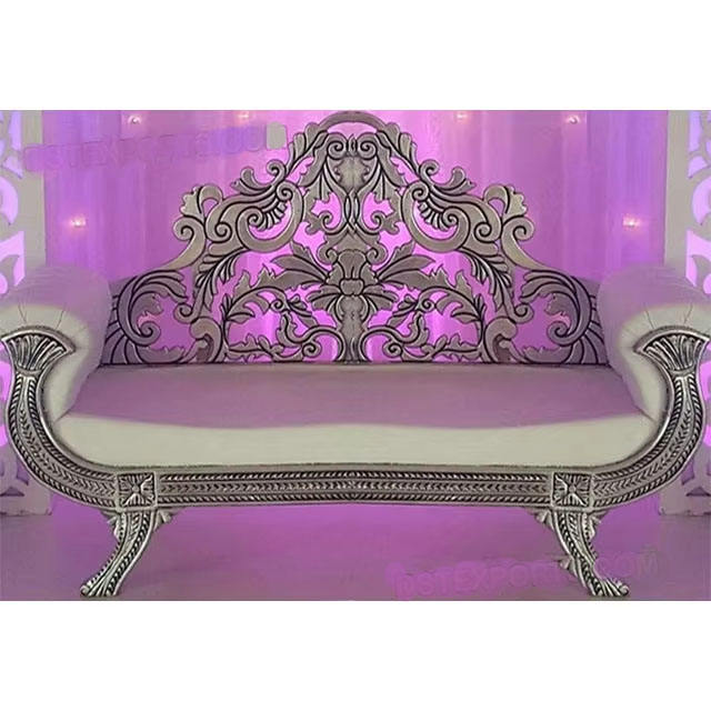 งานแต่งงานเอเชียโลหะแกะสลักสีเงินโซฟาเวทีออกแบบดอกไม้โซฟาปากีสถานจัดงานแต่งงานสมัยใหม่ Heena เฟอร์นิเจอร์ USA DST