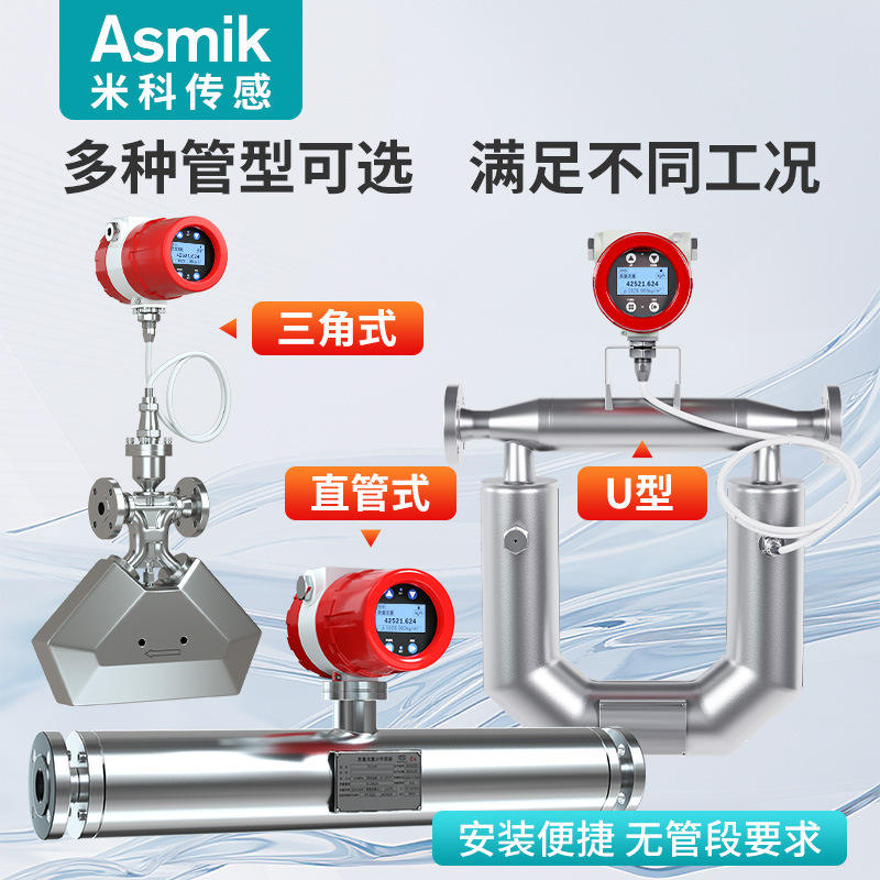 เครื่องวัดอัตราการไหลของมวล Asmik Coriolis รุ่น 304 316 พร้อมหน้าแปลนสแตนเลสสำหรับเชื่อมต่อ ใช้กับน้ำมัน ก๊าซ และของเหลวที่มีความแม่นยำสูง