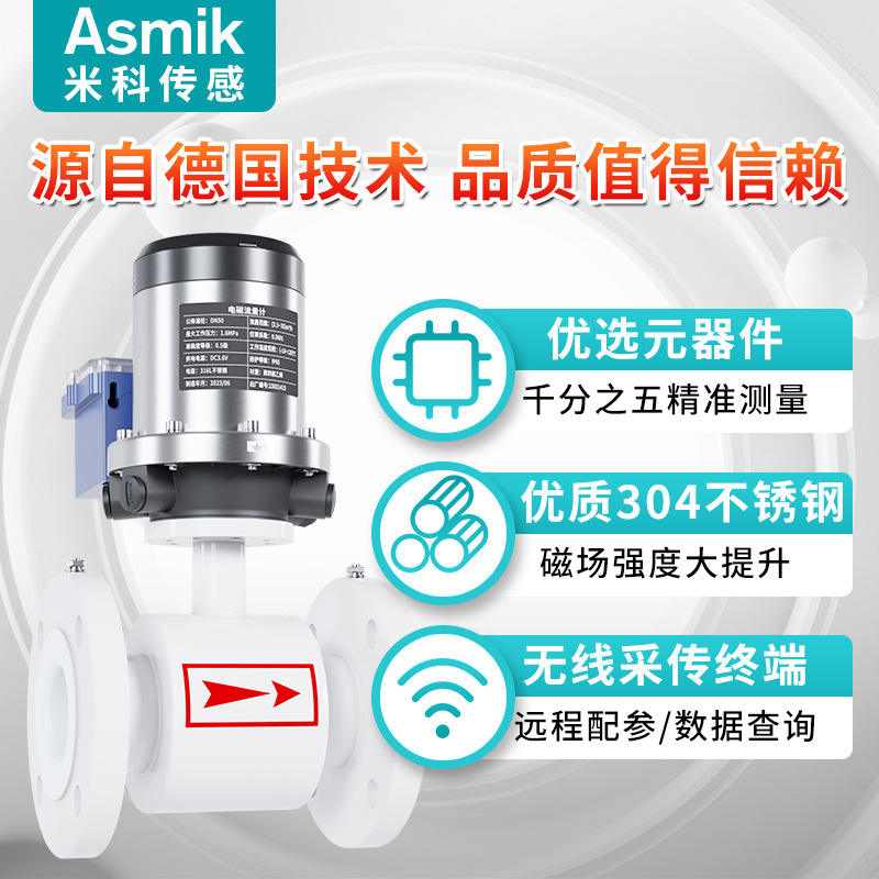 เครื่องวัดการไหลแบบแม่เหล็กไฟฟ้า Asmik DN50 แบบหน้าแปลน พร้อมระบบควบคุมระยะไกลแบบไร้สาย 4G สำหรับของเหลวที่มีฤทธิ์กัดกร่อน น้ำเสีย และน้ำ