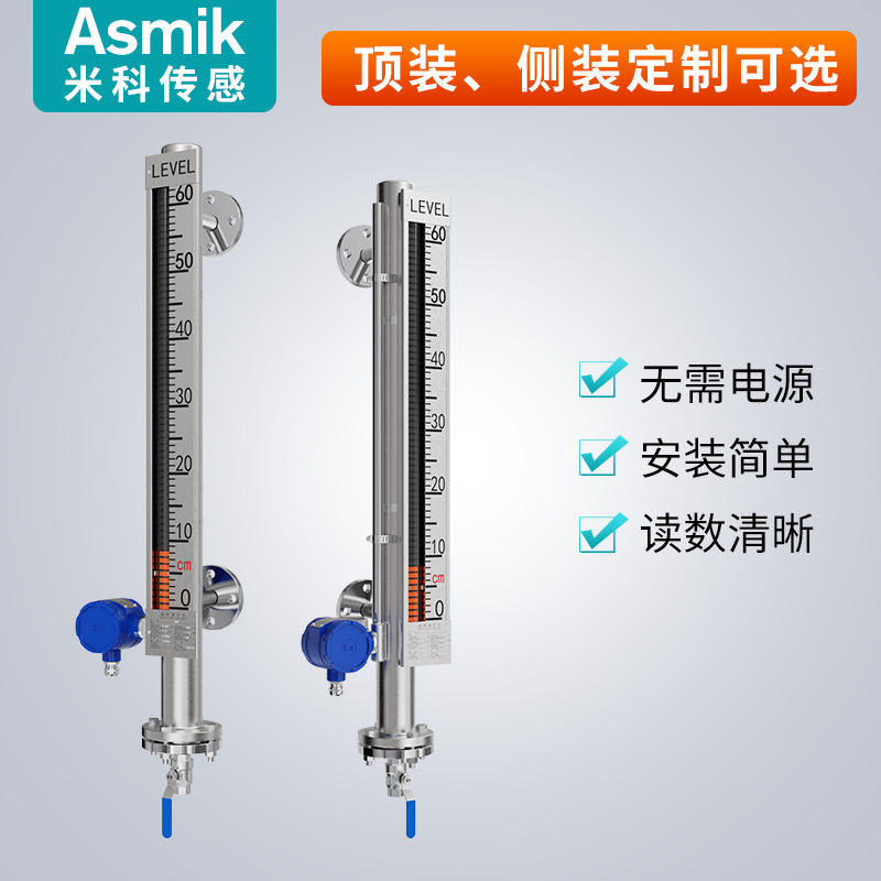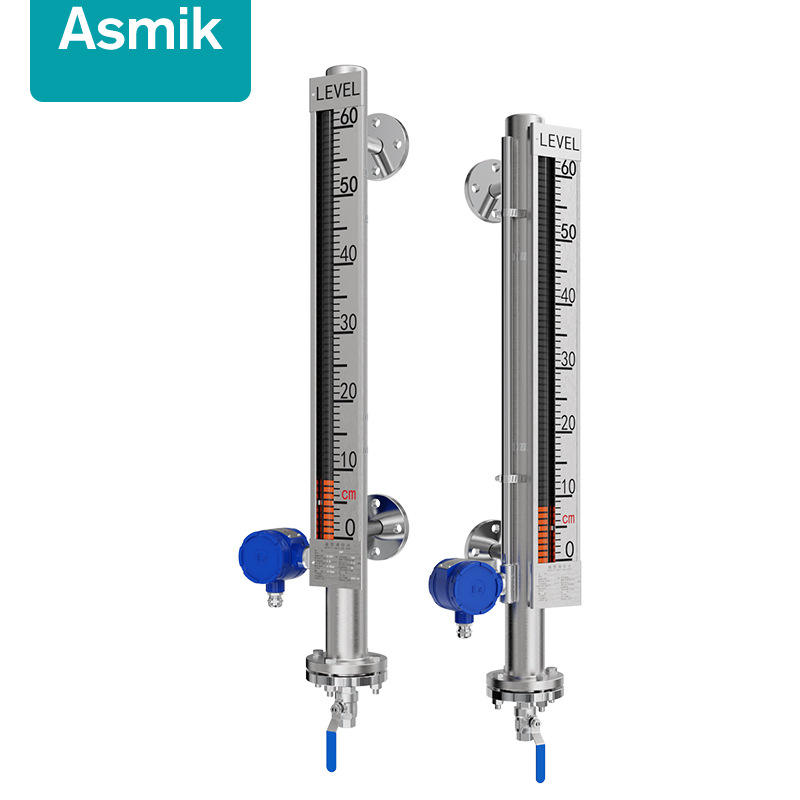 เกจวัดระดับของเหลวแบบแม่เหล็ก Asmik 0-15000 มม. สแตนเลส พร้อมสัญญาณเตือนและระบบส่งสัญญาณระยะไกลสำหรับหม้อไอน้ำ