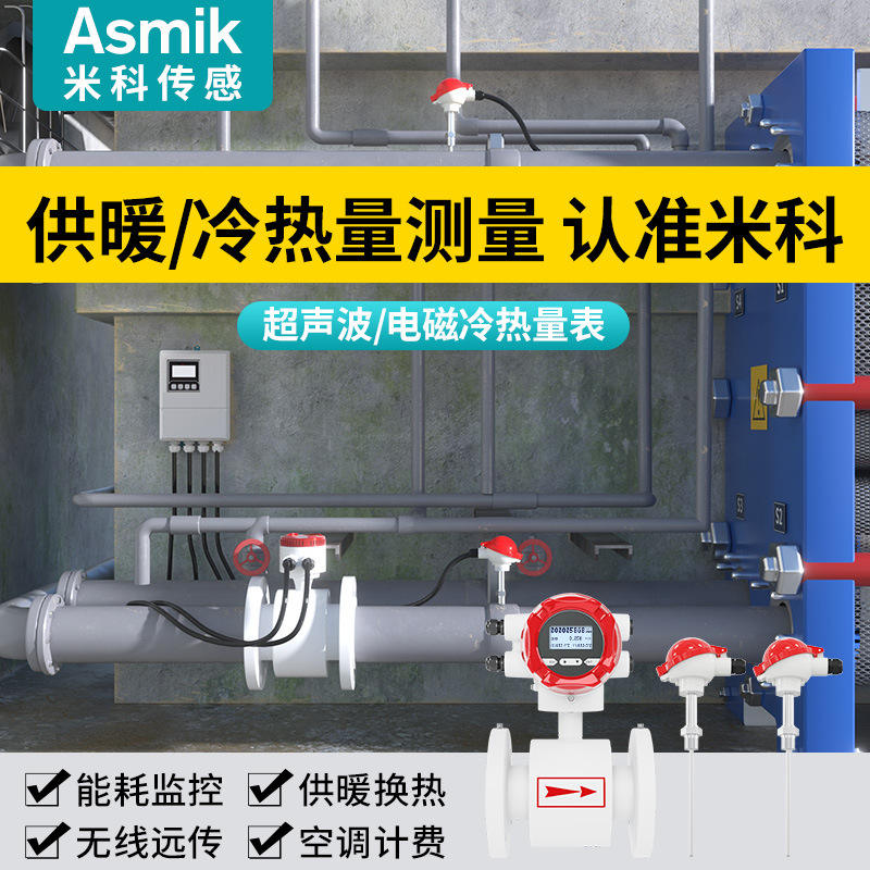 เครื่องวัดความร้อนด้วยคลื่นแม่เหล็กไฟฟ้าอัลตราโซนิก Asmik สำหรับเครื่องปรับอากาศส่วนกลางและการวัดพลังงานหม้อไอน้ำสำหรับใช้ในอุตสาหกรรม