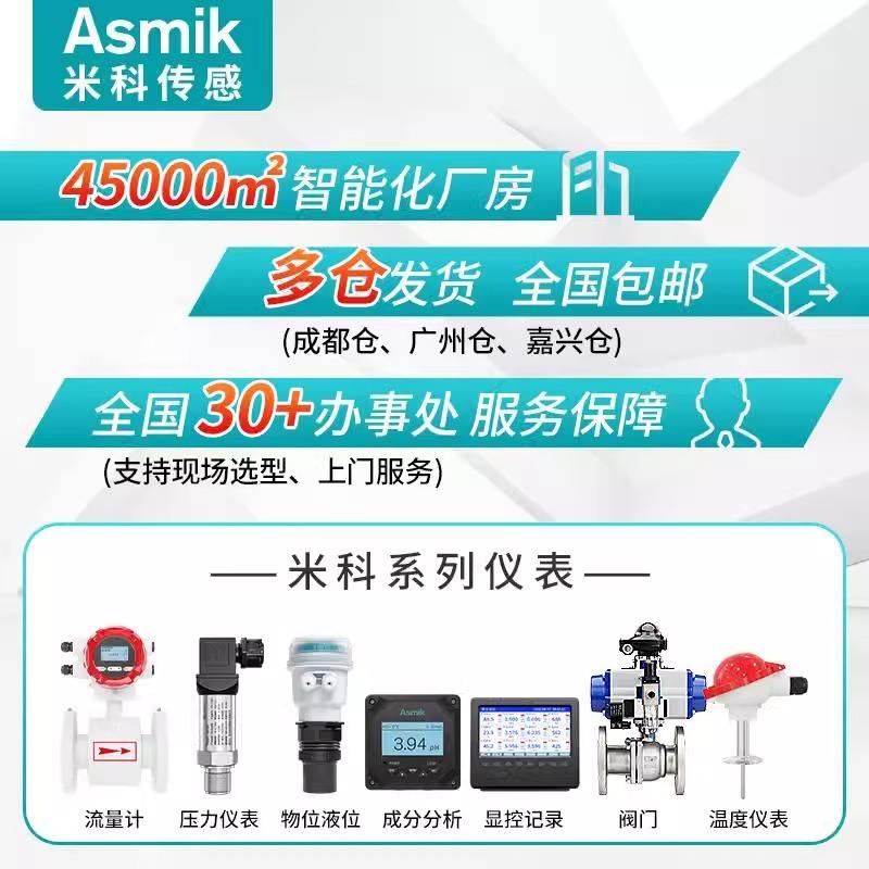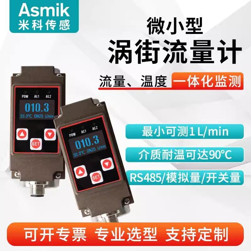 เครื่องวัดการไหลแบบ Asmik Vortex ทำจากสแตนเลส ความแม่นยำสูง สำหรับของเหลวและก๊าซ 24VDC ติดตั้งแบบหน้าแปลน