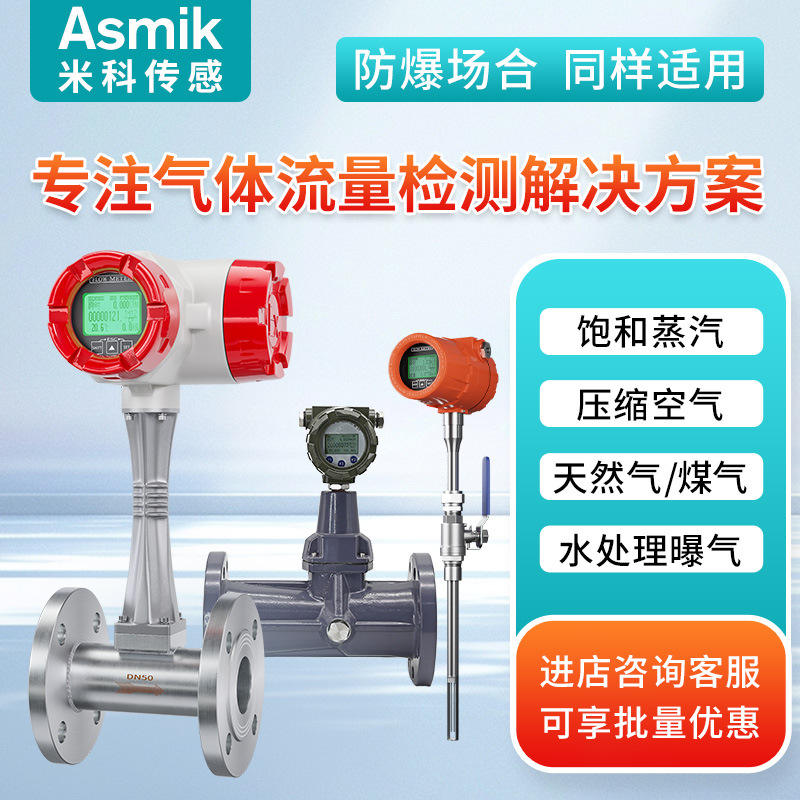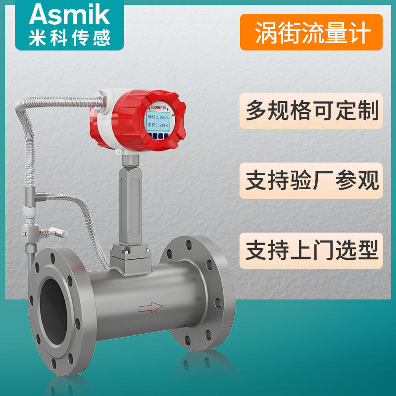 Asmik เครื่องวัดการไหลของกระแสน้ำวนเครื่องวัดการไหลของมวลสแตนเลสสำหรับไอน้ำและอากาศอัดที่มีการชดเชยความดันอุณหภูมิ