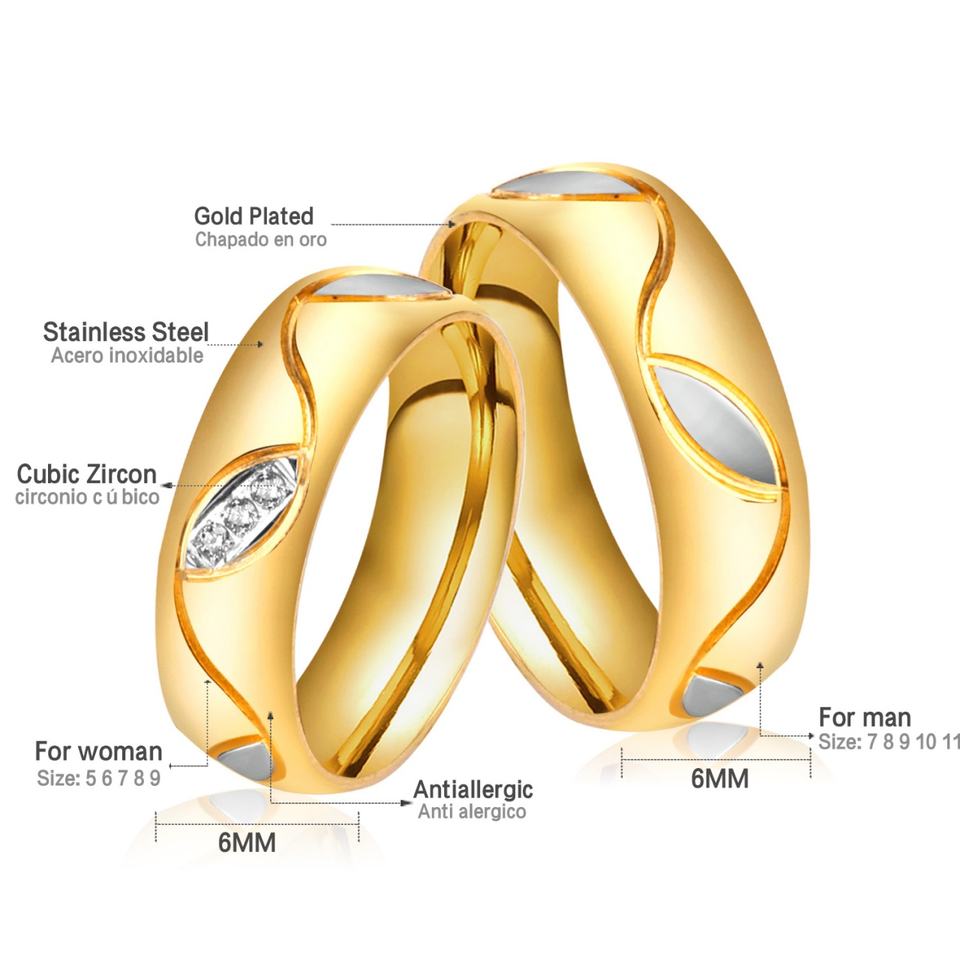 แหวนคู่ประดับเพชรซิคอนสั่งทำพิเศษ ชุบทอง 18K ยี่ห้อ Ason Elegant วัสดุสแตนเลสสตีล สำหรับงานแต่งงานและงานหมั้น