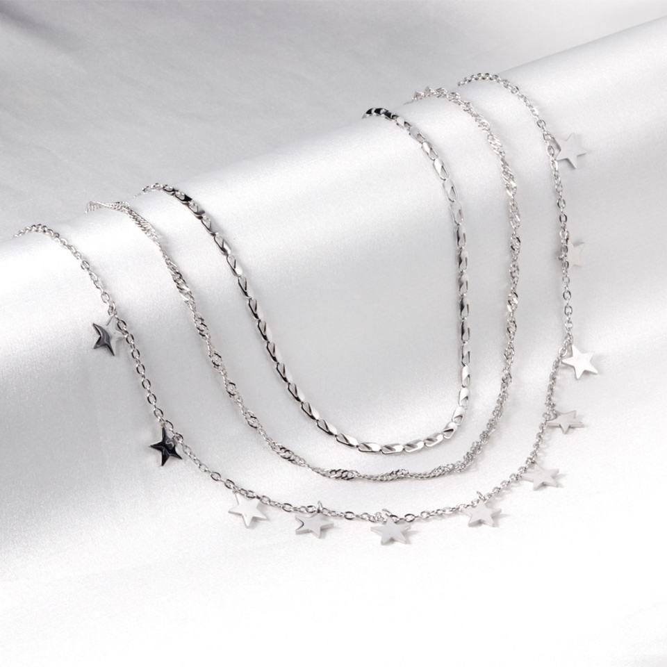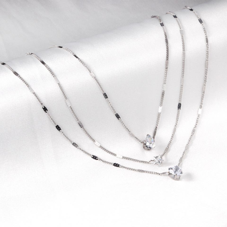 สร้อยคอจี้รูปพระจันทร์และดวงดาวสามดวง ดีไซน์ใหม่จาก Ason ประดับเพชรซิร์คอน ชุบทอง 18K วัสดุสแตนเลส เหมาะสำหรับงานปาร์ตี้
