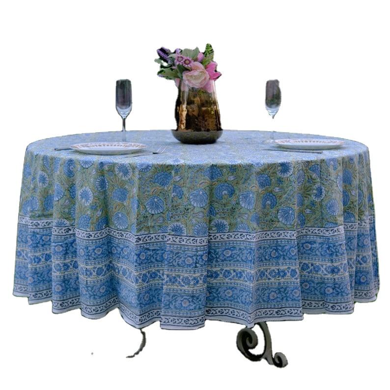 ผ้าปูโต๊ะสีเขียวลายหน่อไม้ฝรั่งผ้าปูโต๊ะทรงกลมสีฟ้าผ้าปูโต๊ะพิมพ์ลายดอกไม้พร้อมขอบผ้าคลุมโต๊ะอาหาร