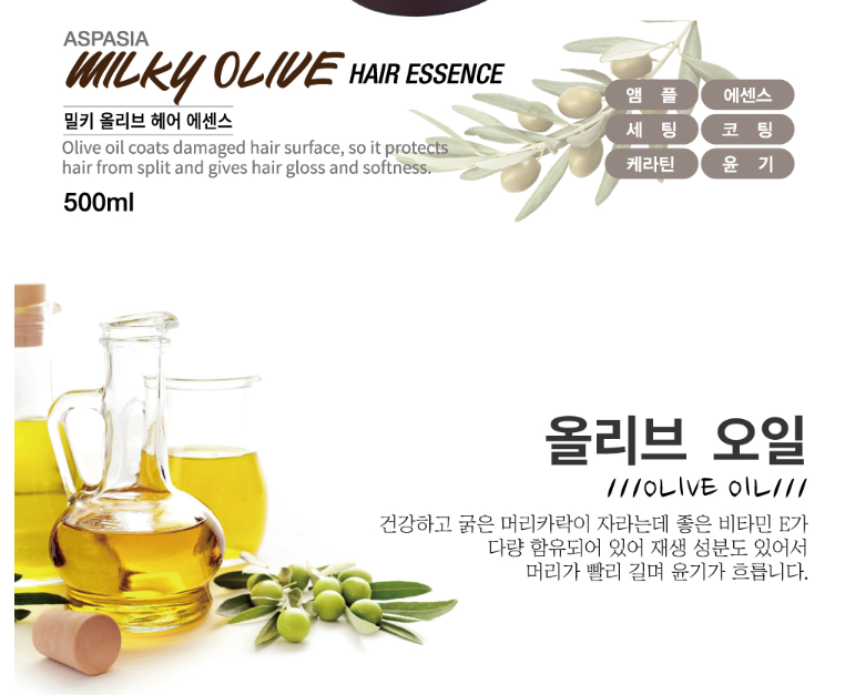 Aspasia Olive Milky Hair Essence Cream 500ml Repair Damaged Hair Care Hair Spa Made in Korea Cosmetic