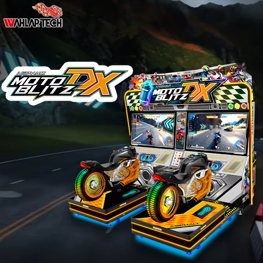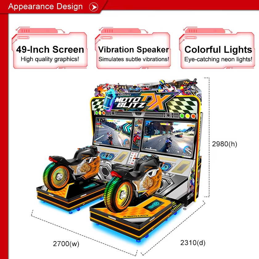 เกมมอเตอร์ไซค์อาเขต Asphalt Moto Blitz DX - เกมแข่งรถแบบหยอดเหรียญ โครงสร้างโลหะ ภาษาอังกฤษ หน้าจอ LCD 49 นิ้ว