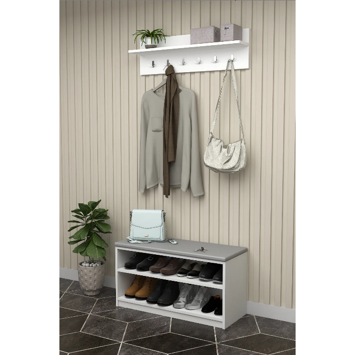ชุดเฟอร์นิเจอร์ทางเข้า Asra Trend A-34 วัสดุ MDFLAM 100% ม้านั่งวางรองเท้าพร้อมชั้นวางเสื้อผ้าติดผนังสำหรับจัดเก็บของใช้ในบ้าน
