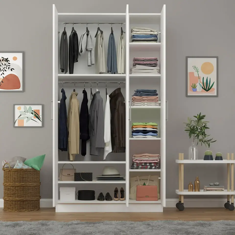 ตู้เสื้อผ้า Asra Trend G-01 รุ่นโมเดิร์น ขนาด 120 ซม. 3 ประตู วัสดุ MDFLAM พร้อมชั้นวางของและราวแขวนเสื้อผ้าสำหรับใช้ในบ้าน