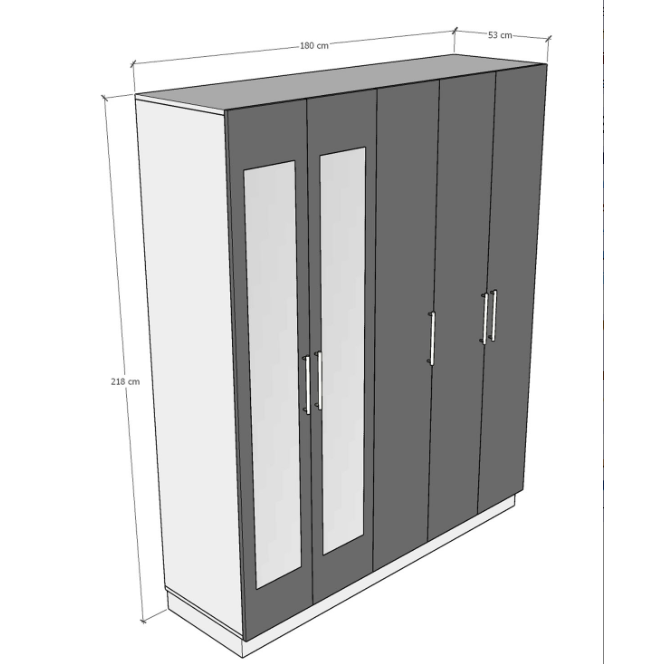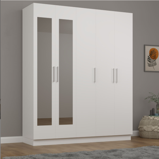 ตู้เสื้อผ้า Asra Trend G-03 ขนาด 180 ซม. 5 บาน ขนาดใหญ่พิเศษ ผลิตจาก MDFLAM 100% พร้อมราวแขวนและชั้นวางหลายชั้น ตู้เสื้อผ้าทันสมัย