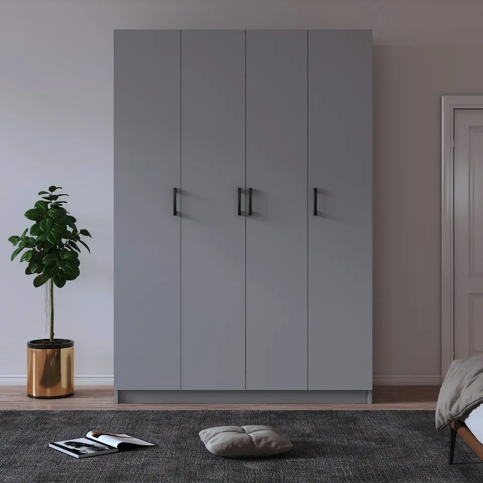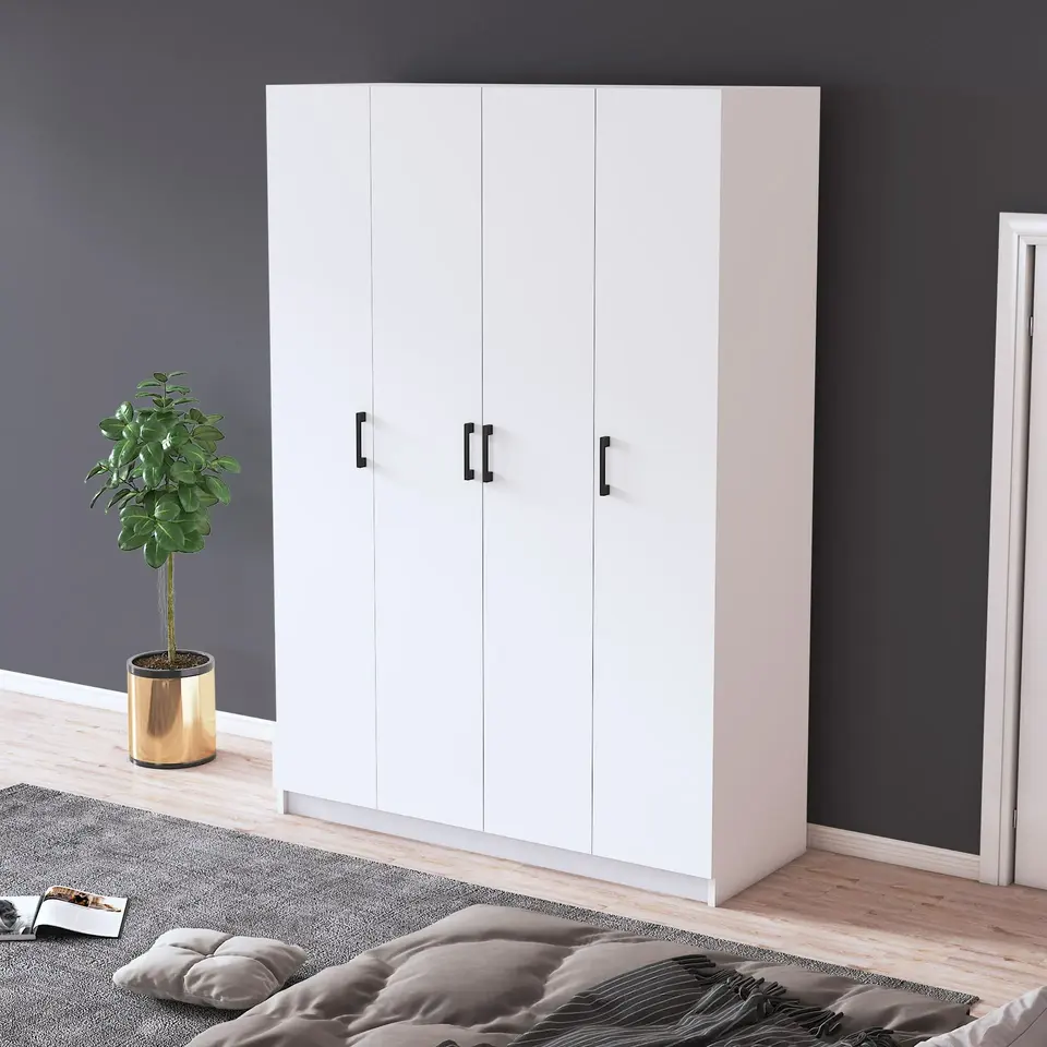 ตู้เสื้อผ้า Asra Trend G-08 4 ประตู ขนาด 120 ซม. ดีไซน์กะทัดรัด สไตล์มินิมอล ผลิตจาก MDFLAM พร้อมชั้นวางของและราวแขวนผ้า สำหรับห้องนอนในอพาร์ตเมนต์