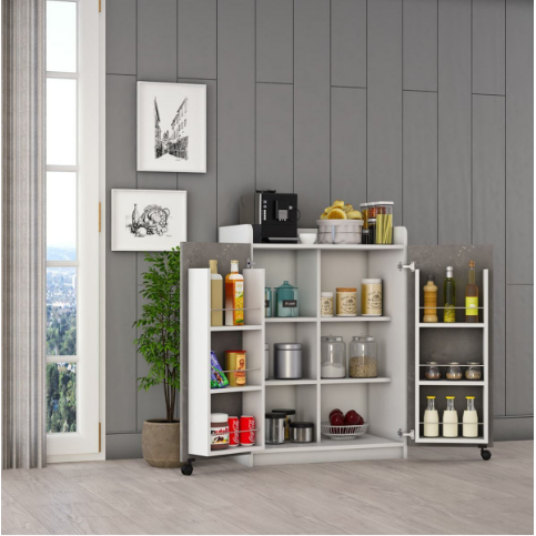 ตู้เก็บของ Asra Trend MK-14 สีเทา/ขาว ขนาด 80 ซม. ผลิตจาก MDFLAM 100% พร้อมบานพับ 155 บาน และชั้นวางประตู